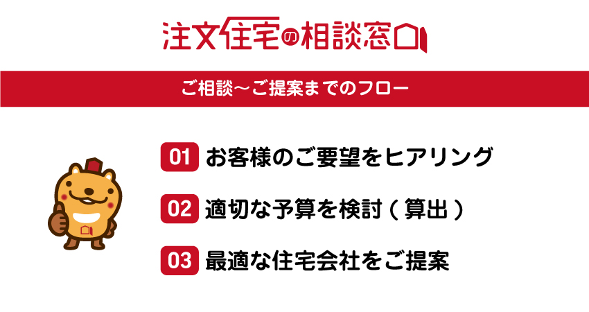 住宅会社比較、住宅ローン比較、保険比較、最適な土地探し、外構や解体工事、リフォームやバリアフリー、相続問題など、「お家づくり」に係るお悩み、お気軽になんでもご相談ください。どのような課題も解決を目指します。